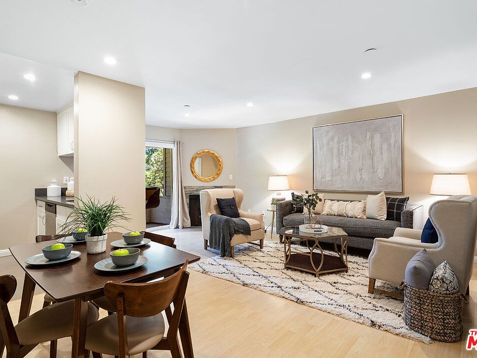 Welcome to your new city home just steps from Westwood Village and UCLA. This front facing quiet corner unit only shares one wall. Upon entry, you are greeted with an oversized walk-in closet and additional gated storage is provided in the garage below. The dining room, living room, and modern kitchen all open up together towards the sun filled balcony. The modern kitchen boasts white shaker cabinets with quartz countertops along with all stainless-steel appliances. The spacious balcony opens up to a peaceful tree lined street with enjoyable views. On the other side of the home lie the bathroom and bedroom. The master bedroom is generously sized and outfitted with custom triple pane windows and blackout shutters to create a soundless and dark sleeping experience. The master bathroom is outfitted with a Jacuzzi tub shower combo and modern vanity. The home has an open floor plan, laminate wood flooring, central AC, decorative fireplace and (2) tandem parking spots. The controlled access building boasts community laundry on each floor, ample guest parking, low HOA dues, Bruin Bus Stop right out front and short walk to your favorite restaurants. Come make this beautiful home all yours! *[Virtual Tour Available]*