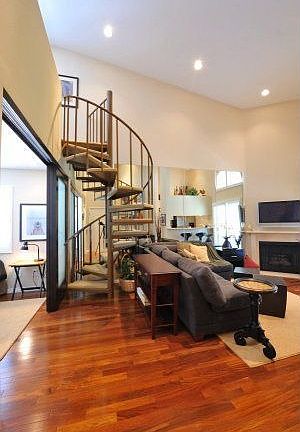 Stunning very bright top floor front facing corner townhouse-style 2 story condo with hard-wood floor, soaring ceiling, fireplace, spiral staircase and balcony. Top to bottom remodel with the finest materials and style. One bedroom is a loft space, one bathroom with spa tub, washer and dryer in the unit.