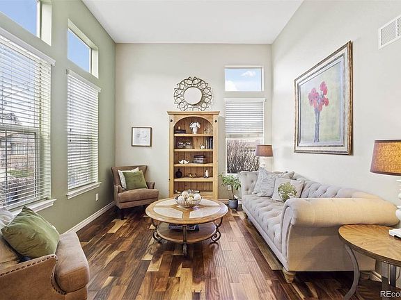 Fall in Love with this impeccable and spacious 4 bedroom, 4 bathroom home with loft, 3 car garage and main floor office. This home is located in the very desirable Hearth neighborhood on a beautiful newly landscaped over sized corner lot at the end of a cul de sac. This Stunning home has elegant wood floors on the main level. The kitchen features granite counter tops, updated cabinets, new updated stainless steel appliances, double oven, island and wet bar in the dining room. The Luxurious Master suite and bathroom has been completely remodeled with an impressive freestanding tub, seamless shower and beautiful custom white quartz counter tops. The expansive loft makes for a great bonus play area, study or can be converted into a 5th bedroom. The finished basement will completely WOW you with its spacious set up, built in flat screen and speakers, a premium bar, wine fridge, dishwasher, granite counters, custom lighting and Kegerater. It also includes a media and game area, additional bedroom and full bath with a walk in shower! A perfect space for hanging out with family, friends and all sports fans. Multiple outdoor spaces make it easy to enjoy a beautiful Colorado evening on the private courtyard patio out front or in the large leveled fenced in backyard layered with mature evergreens and pines for additional privacy. Other features of this home are the Racchio smart watering digital system, Nest thermostat throughout, Ring doorbell security and updated alarm system and Brand New Roof valued at 30K! Close distance to walking/biking trails, schools, Paintbrush Park, Daniel's Park, Southridge Recreation center, as well as easy access to retail stores and shopping centers. This house has everything you need to make it your forever HOME in one of the best ranked neighborhoods in Colorado! Click on the 3D Tour to see more.