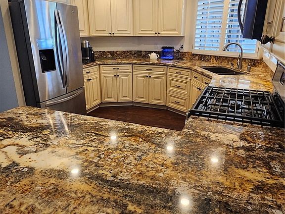 Inviting fireplaceFruiting treesBuilt-in wet barBreakfast barOpen concept living spaceRemodeled master bathEnormous closet