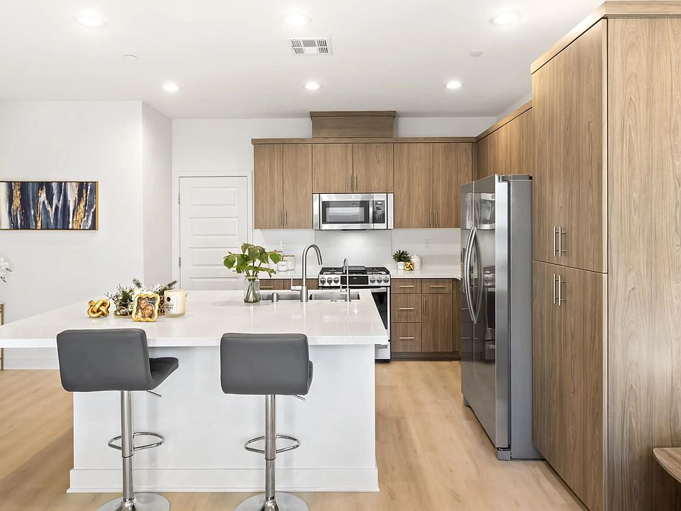 Welcome to 3 Roots, a stunning two-story townhouse that combines elegance, convenience, and modern efficiency in a vibrant, young community designed for contemporary living. Nearly new and impeccably maintained, this home exudes model-home quality with premium upgrades and thoughtful details that make it both sophisticated and comfortable. Step inside to discover a spacious layout featuring upgraded vinyl flooring throughout the main areas and cozy, high-end carpeting in the bedrooms. The beautifully appointed kitchen includes sleek upgraded cabinetry and high-end countertops, creating an inviting space for cooking and entertaining. This townhouse is also equipped with paid-off solar panels and an in-home car charging connection, offering a truly sustainable, energy-efficient lifestyle. Smart home features allow you to control lighting, security, and climate with ease. The community amenities elevate your lifestyle further, with a professional-grade gym, two swimming pools, a party room for special events, and a children’s play area. The location is ideal for young professionals, with close proximity to major tech companies, top-tier hospitals, and a wide variety of shopping and dining options. Nearby supermarkets and retail centers provide all the essentials, making errands effortless. This townhouse is more than just a home; it’s a gateway to modern, energy-efficient living in a community brimming with amenities, convenience, and charm.