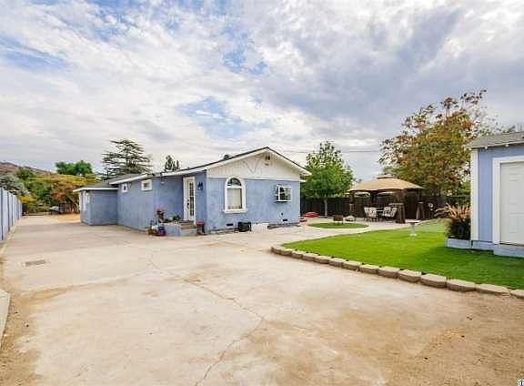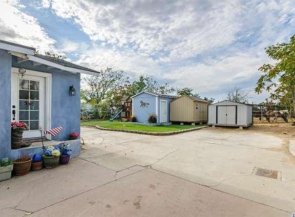 Ranch In The City...Bring your horses home, Shadow Hills adjacent, this is your chance to have your horses at home.when you get home from working they are already there waiting for you. This darling ranch is about 15 miles to Downtown LA. You are going to enjoy owning your own ranch. The kitchen has newer cabinets, stainless steel appliances, knotty pine ceilings, tile counters and flooring, an island with breakfast bar and a walk-in pantry with laundry. The living room has tile flooring and open beam ceilings with two ceiling fans. There is central heat and air plus a ceiling fan in each bedrooms and office. Both bedrooms have fabulous walk-in closets and a nice touch of hardwood flooring. The master has a separate tub and separate shower. There is a second bathroom in the hallway. Outback are 4 covered 12 x 24 stalls and a 5th side stall that is 10 x 24, also partially covered and a large arena. Ample hay shed, work shed and storage shed. There is a great play area for the kids with a two story playhouse and still plenty of play space for the grown-ups too.