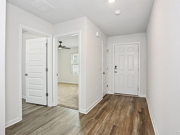 Discover the Cali — a beautifully designed 4-bedroom, 2-bath home offering 1,787 square feet of comfortable living space with a spacious two-car garage. Step through the foyer into an open-concept layout where the modern kitchen flows seamlessly into the dining and living areas. The kitchen features a large island, walk-in pantry, and a perfect view of the covered back porch — ideal for relaxing or entertaining outdoors. Also, a backyard fence for pets or privacy. The primary suite is filled with natural light and provides a peaceful retreat with a double-sink vanity, walk-in shower, and an oversized closet. Three additional bedrooms and a full guest bath offer plenty of room for family or visitors, with a thoughtful split design for added privacy. Smart Home Technology comes standard, including a KwikSet keyless entry system, SkyBell video doorbell, and Echo Dot to help you stay connected and secure. Set within the quiet community of Deer Run, residents enjoy access to a sparkling pool and clubhouse — the perfect blend of comfort, convenience, and community living.