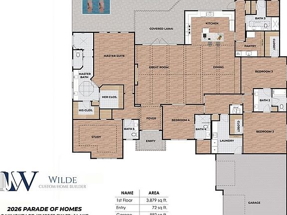 Under Construction. Experience luxury and craftsmanship in this stunning new home under construction by Wilde Custom Home Builder, one of Gainesville’s premier custom builders. Located in the highly sought-after Oakmont community in SW Gainesville, residents enjoy resort-style amenities including a clubhouse, fitness center, park, pool, kids’ splash area, playground, tennis and basketball courts, and a natural tortoise preserve. Set on a spacious 1/3-acre lot bordered by common area on two sides, this home offers both privacy and beautiful surroundings. With 3,879 square feet of heated and cooled space and 5,422 total square feet, the thoughtfully designed floor plan includes 4 bedrooms with walk-in closets, 4.5 baths, a study, and an additional flex room, each with walk-in closets for versatility and storage. High-end features abound, including luxury vinyl flooring, an impressive 60" linear electric fireplace, and vaulted ceilings with stained wood beams that add warmth and architectural character. The gourmet kitchen is a chef’s dream, showcasing a 48" gas range, built-in 48" refrigerator, micro drawer, dishwasher, 48" ledge sink, and a 9-foot pass-through window to the covered lanai—perfect for entertaining. A butler’s pantry with a wet bar, custom shelving, wine cooler, and additional refrigerator enhances both form and function. Energy efficiency is built in, with two tankless water heaters, a high-efficiency 4-zone HVAC system, and spray foam insulation in the walls and ceiling. The home also features 8-foot interior doors and an oversized 3-car garage. Enjoy Florida living at its finest with a saltwater pool, summer kitchen, screened lanai, and paver patio—ideal for relaxing or hosting friends and family. This exceptional new Wilde Custom Home blends modern luxury, timeless design, and energy-efficient comfort in one of Gainesville’s most desirable communities.