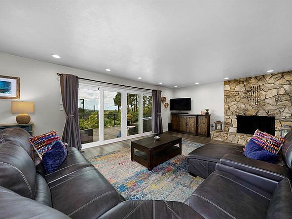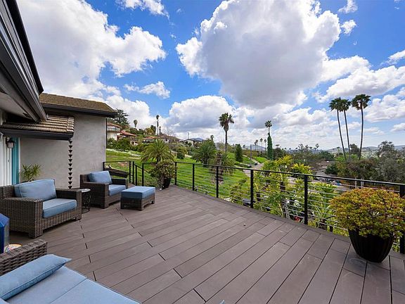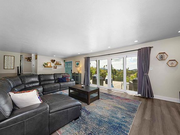 Nestled in a great neighborhood in the desirable Mt. Helix area, this charming home offers the perfect blend of comfort, style, and breathtaking scenery. Boasting 3+ bedrooms and 2.5 baths, this property features an open floorplan that flows seamlessly from room to room, ideal for both relaxing and entertaining. Step into a spacious living room with a cozy fireplace, perfect for gathering on cooler evenings. The updated kitchen is a chef’s dream with sleek stainless steel appliances, ample cabinetry, and recessed lighting that adds a modern touch throughout the home. All bedrooms are generously sized, offering plenty of room to unwind, while the updated bathrooms showcase sleek fixtures and contemporary design. A versatile bonus room provides the flexibility to create a 4th bedroom, home office, or studio space—whatever suits your lifestyle best. Enjoy sweeping ocean and hillside views from the expansive deck, complete with an automatic cover for shade on sunny days. The landscaped yard features a variety of fruit trees, adding to the home’s natural charm and outdoor appeal. The long driveway offers plenty of parking, including space for an RV, making this home as practical as it is beautiful. Don’t miss your opportunity to own this piece of paradise—this home is a rare gem with all the features you’ve been looking for!