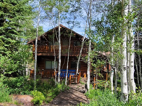 Escape to your mountain paradise, nestled amid aspens and towering pines in the enchanting Sunridge Highlands community. This meticulously maintained log cabin is a perfect blend of rustic charm and modern convenience, making it an ideal haven for nature lovers and outdoor enthusiasts alike! Notable features: 4 decks, workshop in the basement, privacy yet views, circle drive, quiet propane generator, lots of living space inside and outside. Adventure awaits with 3 dedicated RV pads equipped with water and a convenient dumping station, perfect for adventurous trips or family gatherings under the stars! Step inside this lovely log cabin to discover two warm and inviting living spaces that exude comfort and relaxation. With 4 expansive decks, you'll find multiple outdoor spaces designed for soaking in the breathtaking views and immersing yourself in the tranquility surrounding you. Whether sipping your morning coffee or stargazing in the evening, these decks provide the perfect vantage points to appreciate nature's beauty. Venture down to the spacious basement, a blank canvas for additional storage or a versatile workshop that can bring your creative projects to life. This well-appointed home comes furnished, allowing you to move in seamlessly and begin enjoying the serene mountain lifestyle right away. Plus, a generator shed housing a reliable propane generator ensures that you will always have power and comfort during those cozy mountain getaways. What sets this property apart is the location in a community abundant with wildlife. Picture moose wandering nearby, enhancing the charm of your unique retreat. The Sunridge Homeowners Association offers access to community amenities, including a delightful pavilion ideal for gatherings or special events. Property is surrounded by 2 sides of the common area. Don't miss this extraordinary opportunity to own a remarkable log cabin retreat, where every day feels like a vacation! Whether you're seeking solace amidst nature or thrill in outdoor exploits, this stunning property offers it all. Schedule your private tour today and make this mountain paradise your own! 24 hour notice to show. Listing agent must be present to show.