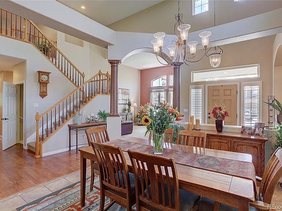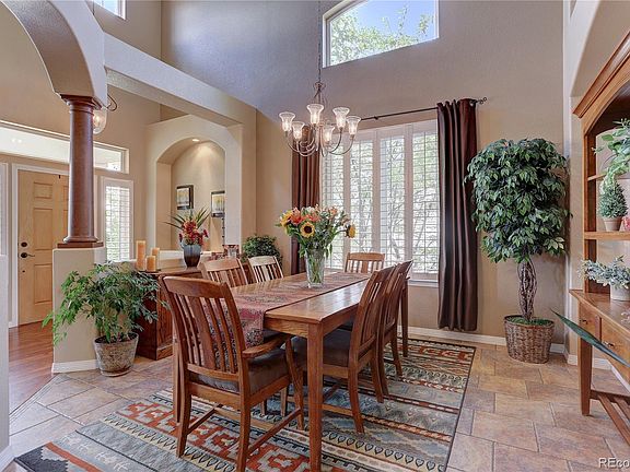 This is HOME! This beautifully updated home with main floor master is in the highly coveted neighborhood of Wildcat Ridge. The home immediately welcomes you with its charming curb appeal and well manicured lawn. As you enter the home, you are welcomed by high ceilings which carry through to the family room, hardwood floors, neutral colors, lots of natural light and a spacious dining area and formal living room. The kitchen has been updated with beautiful cream-colored cabinets and includes an island, light colored granite tile counters, gas stove, stainless appliances, & breakfast nook. The family room looks out to the covered paver patio & private backyard and has a gas fireplace, built-in speakers and hardwood floors. The main floor also includes a private office & large laundry room. The spacious main floor master suite has vaulted ceilings, 2 sided fireplace & overlooks the private backyard. The large master bath has updated light colored cabinets, dual sinks, soaking tub, & beautiful tiled floors. The basement is the perfect place to entertain with a wet bar, pool table, built-in speakers & living area / game room plus ½ bath and lots of room for storage. Relax in the morning sun on your beautifully covered paver patio with your cup of coffee or over a cool drink in the evening with friends. The paver patio has a wood plank ceiling, recessed lighting, ceiling fan and built in speakers plus room for a hot tub. Wildcat Ridge has its own park & pools and even has its own swim team. It is also unincorporated giving you lower taxes. It is directly across from Rock Canyon High School & backs up to McArthur Ranch's horse property making you feel like you are in the country while living in the city. There are miles of trails, ideal for hiking and biking and it is close to Park Meadows Mall and lots of restaurants & shops. Easy access to I-25 and C-470. It is the ideal neighborhood with something for everyone.