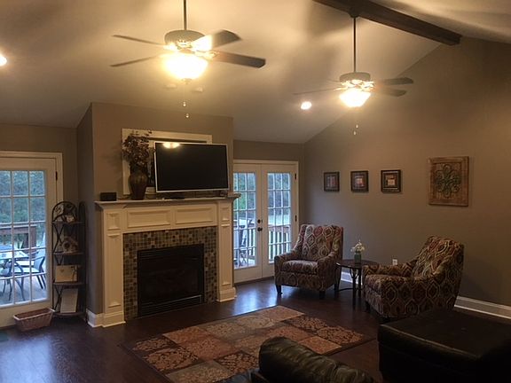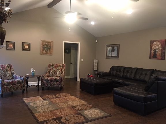 This brick 2,067 square foot home sits on 1.62 acres and has 3 bedrooms, 2 full baths, plus a bonus room. It was built in a beautiful area 2 to 3 minutes from the interstate. It has tall ceilings and wood beams in the kitchen and living room, a fireplace with beautiful detail, and a large kitchen with lots of cabinets and countertop space in addition to a 6-burner stove. The front porch is perfect for rocking on with beautiful scenery for the view. Two sets of double French doors open up from the living room into a nice size back deck. Master bedroom has two walk-in closets and a master bath with double sinks, a walk-in shower, and jet tub. There is a tankless water heater and an irrigation filtration/sprinkler system with easy lawn maintenance. The attic is large for storage space and the home includes an attached garage. Sellers just replaced the automatic garage door. The home also has a built-in security system, a spacious living room, and great neighbors. The 2nd and 3rd bedrooms are a great size with double door closets. Bedroom ceilings are inverted for architectural style. Home includes a laundry room with a sink, countertop, and cabinets above washer/dryer hook-ups.