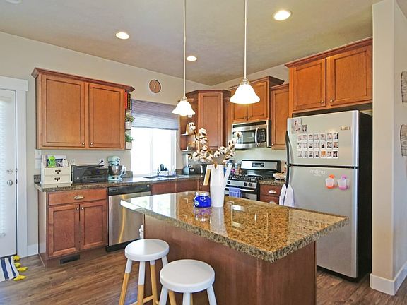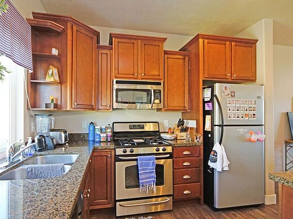 Quarry Bend community and the amenities offered: clubhouse, exercise, hot tub & community center with pool & fully equipped kitchen. Maintenance free luxury town homes at the foot of the bench in Sandy. GREAT LOCATION Open design architecture open wide vaulted and open spaces with modern kitchen with granite countertops. End unit town home provides daylight windows into spacious opens floor layouts. Includes refrigerator, washer and dryer. Extra deep 2 car garage with extra storage and locked storage closet.