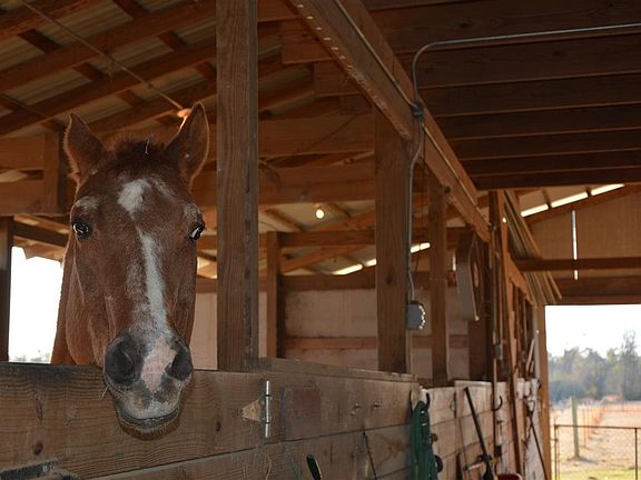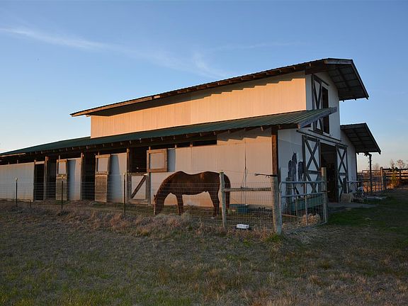 A beautiful 7.5-acre property with a 9-stall barn and tack room. If you love horses or country living, this is your dream! This cute home with a brick exterior and a white picket fence has been remodeled in recent years, with tile floors throughout the home and a modern master bath. The 36 X 72 barn has a massive loft, and water and electric. A new 1,400 sf deck was just built on the home, and the fire pit and patio furniture are included. Lovely above-ground pool with new liner last year. Gorgeous pastures, and the entire property has water. Most of the property is fenced, and beyond your vision, the land goes about an acre deeper into the woods in the back. Generator attached to home powers most of the house via a massive propane tank if needed, and hurricane shutters in place. The kitchen features a stainless steel refrigerator, built-in microwave, electric stove, breakfast bar, dishwasher, pantry and dual sink. Relax in your great room with a vaulted ceiling, wood-burning fireplace, surround sound, and walk-out to the deck. The modern master bath features tile counter tops on the dual vanity, a tiled wall over the garden tub, separate shower, big linen closet and two walk-in closets.