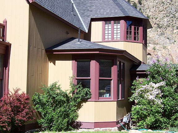 Custom"Gothic Revival" style home located in Historic Georgetown. As you enter home you can't help but notice the tiled entry hand-crafted leaded glass window, and tapestry wall covering. Spacious living room with expansive windows, filled with sunlight and beautiful views of Sunrise Mtn and Georgetown. Living room features a Tiled Ornate Gas Fireplace with brass kick-plate, alabaster light fixtures, and built in bookshelves. Beautiful hardwood floors, period wallpaper, and unique tower room, sharing the imagination of builder, and decorator. Kitchen has beautiful "Antique" glass cupboard doors, and lots of counter space. Dining rm open to main living area, has massive windows, opens to southern facing deck. Very Lg bdrm on main level, presently used as a parlor, music rm. Grand master suite w/large walk in closet, and 5 piece bath. Lower level has den and large family room, (could easily be a 3rd bdrm with 3/4 bath. Attached oversize 2 car garage with room for recreational vehicles.