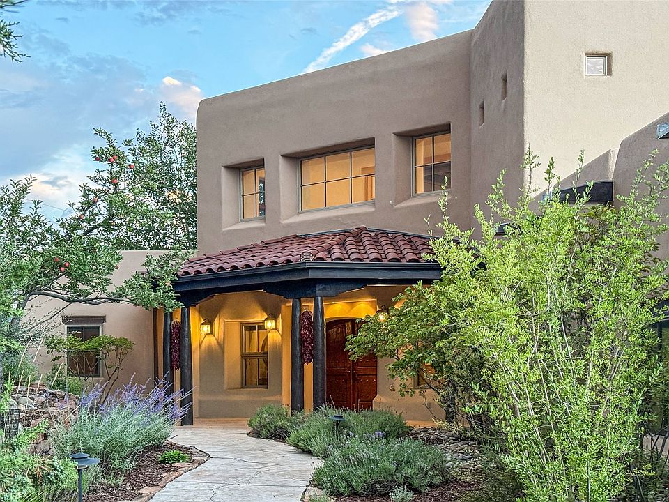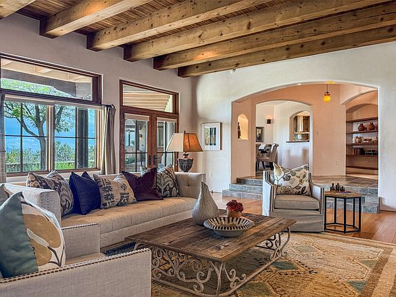 Discover panoramic views and refined details throughout this beautifully crafted pueblo style residence by renowned builder Bruce Thompson. With 3 beds/4 baths (including 2 primary suites) and 4,875 sq. feet, plus elegant finishes like diamond plaster walls and features like ceiling beams and stained glass doorways, this home blends luxury with timeless character.