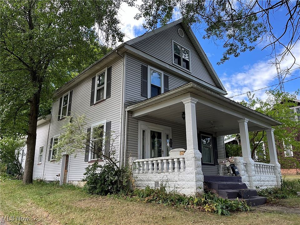 Consisting of a 2 story home built in 1918 of approximately 2136 square feet. Kitchen with built in oak cabinets, dinette area, tile floor. Formal carpeted dining room with oak trim, pocket doors and fireplace. Large unfinished family room with cement floor, vinyl windows and drywall. Full bath and laundry on first floor. Formal entrance with open oak staircase to the second floor that hosts 3 bedrooms with closets and a full bath. 3rd floor with 2 bedrooms, closets and tile floor. ¾ unfinished basement. Covered front porch. Gas forced air heat. Vinyl siding and shingle roof. All situated on a .39 acre city lot.