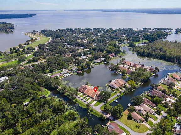 Waterfront Living on the Harris Chain of Lakes – No HOA! Welcome to this beautifully updated 3-bedroom, 3-bathroom townhouse with a loft-style bonus room, located in one of Leesburg’s most desirable waterfront communities. Sitting on a beautiful lagoon lot leading directly to Lake Harris and the Harris Chain of Lakes, this property offers the ultimate Florida lifestyle—boating, fishing, and relaxing right outside your door. You are a short boat ride to Venetian Gardens in Leesburg and the new waterfront restaurant "Ski Beach". This is the perfect spot for relaxing and enjoying the water and the activities the area has to offer. Inside, the home features a fully remodeled kitchen with top-of-the-line appliances, a built-in wine and coffee bar with wine refrigerator, a beautiful custom backsplash, and soft-close cabinetry with pot-drawer storage. The plumbing has been completely redone, giving peace of mind as well. The spacious great room has vaulted ceilings, a gas-burning fireplace, and direct access to a newly renovated back deck and screened porch with a 220-volt hookup for the hot tub—perfect for entertaining or quiet evenings overlooking the water. The main-floor Master suite includes a remodeled bathroom with a tile shower and double walk-in closets. A private guest suite with its own bathroom is also conveniently located on the first floor. Upstairs, the loft serves as an excellent bonus area for a den, office, or media room, and there is an additional bedroom with a private ensuite and large storage closet upstairs as well. Other features include a spacious two-car garage with screen enclosure and golf cart-friendly access to downtown Leesburg, Venetian Gardens, and UF Health Leesburg Hospital. With no HOA restrictions, this home is a rare opportunity to enjoy waterfront living in a sought-after location complete with plenty of updates. Move right in!