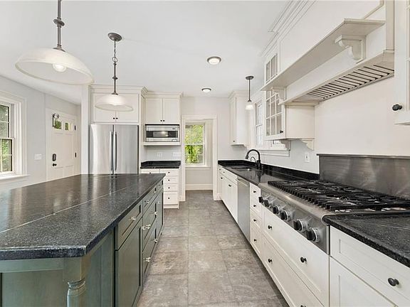 This lovely 4 bed Greek Revival home is situated on over 2 beautifully landscaped acres in the Furnace Hill Brook Historic District of Cranston. Located in a A-80 zone which allows agricultural operations. Over 2700 square feet of living space on three levels plus a 1600 square foot heated/air conditioned barn contains office, bonus room, workshop, single garage bay, and walk-up attic. Additional features in a Chef ’s kitchen with Thermador appliances, pantry, and soapstone countertops, wide plank heart pine floors, two bedroom suites with private bath on the 1st and 3rd floors, all updated mechanicals throughout, Walpole Woodworkers fencing, extensive perennial gardens and a detached 2 car garage.