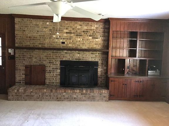 Looking for a house in the country? Look no further! This charming, brick house sits on an acre and has three bedrooms, two and a half baths, sun room, den and all the appliances in place and working. There are real wood floors in the dining, living room, two of the bedrooms and down the connecting hall. The master bedroom has carpet and it's own vanity. The kitchen looks out into the den and opens into the dining room. There are pocket doors between the living and dining room, both of which are paneled. The den has a huge fireplace and built in bookcases. The sun room has brick steps into the kitchen and master bedroom. The sun room has tile on the floor and tiny wooden slats on the ceiling. There are ceiling fans through out this move in ready house. Property is on a dirt road and has a nice yard.