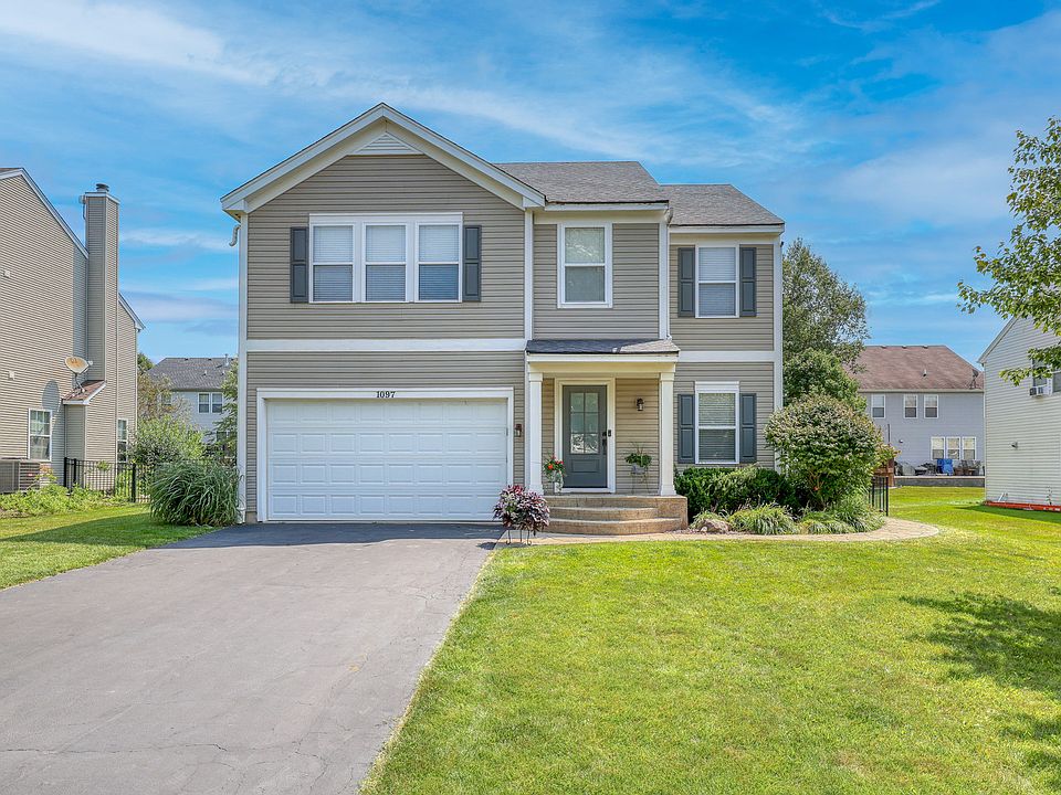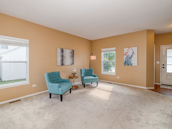 Welcome to this home in the highly desirable Blackberry Creek subdivision! This beautifully maintained 3-bedroom, 2.5-bathroom residence, complete with a partially finished basement, is move-in ready and waiting for you. The kitchen is featuring stainless steel appliances, a cozy eating area, and a spacious walk-in pantry for all your storage needs. Upstairs, you'll discover a versatile loft that offers extra living space, along with the convenience of upper-level laundry. With 9-foot ceilings and 42" maple cabinets throughout, this home feels open and airy. The partially finished basement provides additional living space and ample storage closets, enhancing organization and functionality. The luxurious master bathroom boasts an extra-wide tub for that spa-like feel. Step outside to your backyard oasis, where a stunning stamped concrete patio with a charming pergola awaits-perfect for summer relaxation and outdoor entertaining. This home is conveniently located near schools, parks, and the Metra station, making commuting a breeze. Don't miss your chance to make this incredible property your own!