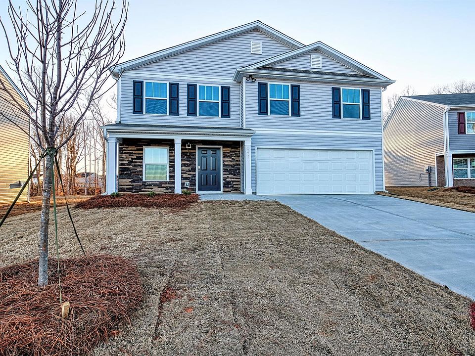 THIS MOVE IN READY! The SHANE floor plan in a POOL community with STONE front and a covered PORCH is 3 bedroom 2.5 bathrooms well laid out. BACKS TO trees and privacy. The open floor plan is perfect for entertaining, featuring granite counter tops, abundant counter space, a HUGE walk in air conditioned panty. ALL appliances are included even a washer and dryer! Whirlpool stainless steel appliances with a 5 burner gas range, shaker style cabinets with handles and even crown molding ! Don’t forget the gas log fireplace in the Living area for those chilly nights. You will find a large guest powder room on the first floor. Your second level has a spacious loft and plenty of storage throughout, 2nd bathroom has raised vanity, dual under mount sinks and a beautiful venetian marble top , tub and shower combination. Your huge Landry room is also on the same level did I mention its air conditioned. The best for last !!! The Owners Suite will easily accommodate a king size bed with vaulted ceilings and an OVERSIZE walk in closet that is unheard of at this price point ! Owners bath has a Soaking TUB and separate shower with framed glass enclosure, raised vanity dual under mount sinks and a beautiful venetian marble top. The Smart Home package is included with no monthly fee, even a video doorbell. BRAND NEW HOME with WARRANTIES FROM THE LARGEST BUILDER IN THE USA! Including Hawaii.