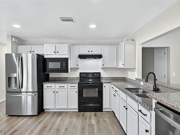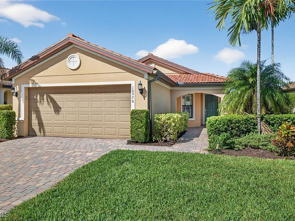 Welcome to your slice of paradise in the beautiful community of Bridgetown! This 2-bedroom, 2-bath home offers an open floor plan and 2-car garage. The bright, spacious kitchen features granite countertops, a breakfast bar, pantry and new refrigerator and dishwasher. New luxury vinyl plank flooring flows through the kitchen/living area. Open the sliding doors to your screened lanai and take in the peaceful lake view — the perfect spot for morning coffee or evening get-togethers with friends. The primary suite includes a large walk-in closet and tastefully remodeled ensuite bathroom. The 2nd bedroom provides privacy and easy access to the second bath. You’ll also love the added touch of a laundry room with sink for extra convenience. Bridgetown is a gated community known for its relaxed, low-maintenance lifestyle and incredible amenities. Residents enjoy a resort-style pool and spa, lap pool, tennis, pickleball and bocce courts, a state-of-the-art fitness center, BBQ area with firepit and play lot. All of this just minutes from fine dining, RSW Airport, spring training for the Twins and Red Sox, Topgolf, and the area’s beautiful beaches. Come experience the Florida lifestyle you’ve been dreaming of — this home is ready to welcome you!