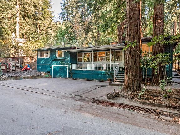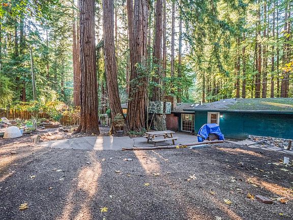 Potential in this quaint, ranch-style home located minutes away from Brookdale Lodge and Downtown Boulder Creek. Features a covered front porch with wooded views. Single level home with two separate bedroom suites, living/dining room combo and a separate breakfast nook/home office located off the kitchen. The level 6800+ sq ft lot is a blank canvas. There is a concrete patio around a redwood grove, large side yard, front yard space, and raised gardening beds. Multiple parking spots 4+ in front of the home plus some off street parking. Lots of storage and workshop space under the home plus a detached shed.