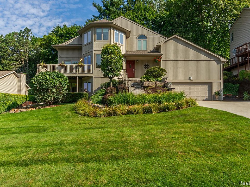 Great Value in a Contemporary Gem! Throughout this home, you will find wood floors and matching wood trim, high-quality Pella windows and door walls, with integrated internal blinds, that means no more dusty blinds—just clean, sleek lines. Kohler fixtures throughout the home add a touch of luxury to everyday living. One the main level, the bright and cheery kitchen opens seamlessly into the living room and breakfast area and has Cambria quartz countertops, a spacious island, stainless steel appliances, and a chic subway tile backsplash. Cozy up by the gas fireplace with a beautiful stone surround, perfect for relaxing evenings in the family room. A sunroom flooded with natural light features a wall of windows and a door wall that leads to a wraparound deck—ideal for indoor-outdoor living. The large primary bedroom is a true retreat, with skylights, an electric fireplace, a walk-in closet, and a vaulted ceiling that adds to the airy, spacious feel. Upstairs, you’ll find two generously sized bedrooms along with two bathrooms one with dual vanities, ceramic floors, a shower, and a soaking tub—perfect for pampering. In the lower level, you’ll have a multi-purpose room with a closet - concealed laundry area offers versatility. Entertain with ease at the wet bar, complete with sink and cabinets. Another sunroom on this level, featuring a wall of windows and a door wall to the patio, ensures that natural light abounds. A cozy bedroom and full bath with a shower round out this floor, offering additional privacy for guests or family members. Outside, this contemporary home sits on a beautifully terraced yard with meticulously maintained landscaping and hardscaping. Extra parking in the driveway provides added convenience. Located close to shopping, restaurants, schools, and expressways, this home combines serene living with easy access to everything you need. Don’t miss the opportunity to make this stunning, value-packed home yours!