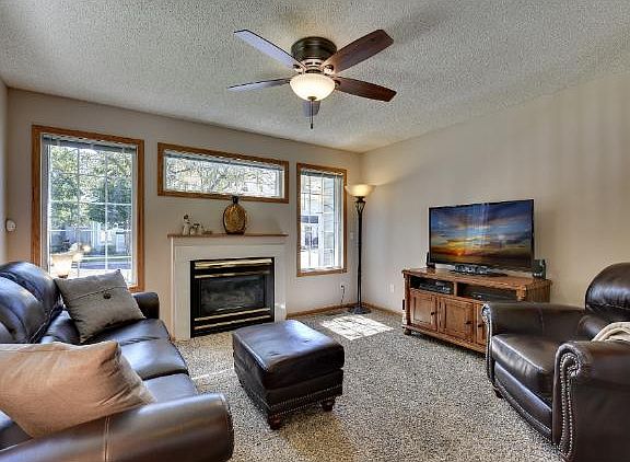 Turn key end-unit w/many upgrades!Spacious KTw/tons of cabnt/cntr space & upgraded appllnces. Pergo flrs, newer carpet in LR. Gas FP in LR. Master has private walk-thrgh to BA w/sep shower & tub and his & hers closets. Private patio w/wooded view.