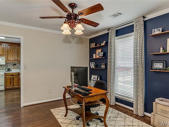 The PERFECT one level home located in a cul-da-sac with a HUGE and private fenced backyard! The beautiful brick front make this home stand out. Enjoy walking up to this inviting entrance with lush & well kept landscaping. The home offers durable & clean vinyl plank flooring throughout! Enjoy the massive amounts of counter space this kitchen has to offer as well as bar seating, breakfast nook and formal dining room (currently used as an office). The wonderful size living room w/ wood burning fireplace walks out onto the large backyard and lovely patio space. Split floor plan w/ the Master Suite on one side and guest bedrooms on the other. Master Suite w/ carpet flooring, neutral wall color, walk-in closet, & double sinks. Clean STORM SHELTER located in two car garage! NEW Privacy Fence!