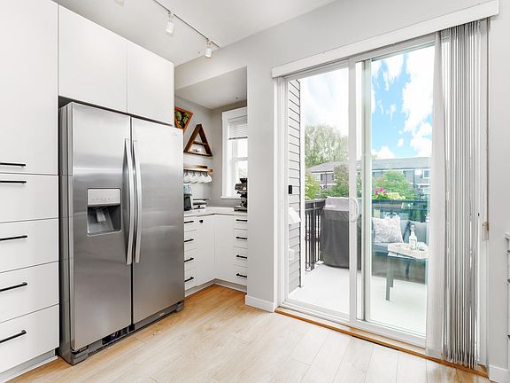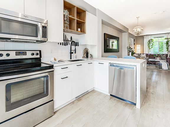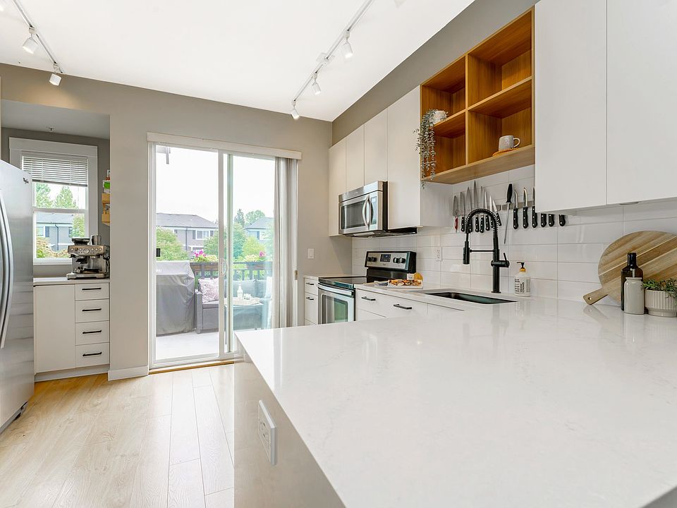 MUST SEE – OSPREY by Mosaic! Riverside living meets everyday convenience in this bright and stylish 2-bedroom + den Franklin Series townhome. Steps from your favorite coffee shop, yoga studio, dog groomer, daycare, eateries, ice cream, and art studio – with Freemont Village and Golden Ears Bridge just minutes away. Thoughtfully designed with Georgian-inspired architecture, a striking open-riser staircase, & 9’ ceilings on the entry and main levels. Oversized windows fill the home with natural light. The kitchen features crisp white cabinetry, large island, and sliding doors to an east-facing deck—perfect for morning coffee or BBQs. The versatile den is ideal as an office, playroom, or 3rd Bedroom. A beautifully maintained home in a vibrant, connected community offering an active lifestyel