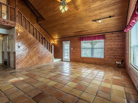 Log cabin with great views of the lake. Large covered patio and huge front yard. Open living area with vaulted ceiling and pine logs.. Private master suite upstairs with tumbled marbled shower and granite counters.
