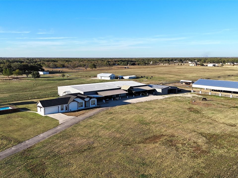 PRICED TO SELL!! INCOME POTENTIAL. GORGEOUS 13-ACRE RANCH INCLUDES A 7200 SQFT HORSE RIDING ARENA, 6,000 SQFT EVENT VENUE WITH CAPACITY FOR 300 GUESTS, 6,000 SQFT WAREHOUSE WORKSHOP, 150X20 COVERED PORCH, 14-HORSE STABLE AND A 2,150 SQFT MODERN FARMHOUSE FROM 2023* WITH LOTS OF UPGRADES. IT INCLUDES AN OUTDOOR KITCHEN AND ABOVE-GROUND POOL WITH 16'X32' DECK. COZY MODERN FARMHOUSE WITH OPEN CONCEPT FEATURING 4 BEDROOMS, 2 BATHROOMS, 1 OFFICE, AND 2-CAR GARAGE. GRAND KITCHEN WITH GORGEOUS CUSTOM CABINETS REACHING THE CEILING, HUGE ISLAND, AND BEAUTIFUL QUARTZ COUNTERTOPS. LOVELY MASTER BEDROOM WITH STAND-UP SHOWER AND FREE-STANDING TUB. ELEGANT TILE FLOORS THROUGHOUT THE HOUSE. HIGH CEILINGS AND RECESSED LIGHTING THROUGHOUT. MAKE THIS GORGEOUS RANCH YOURS! ALL INFORMATION DEEMED RELIABLE. BUYER(S) & BUYER'S AGENT TO VERIFY ALL INFORMATION.