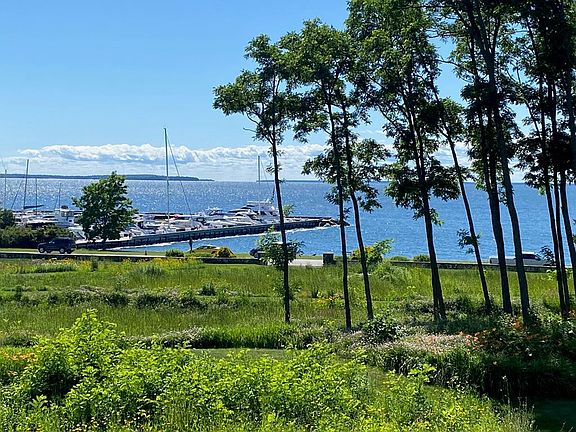 Located just north of downtown Sister Bay and adjacent to Yacht Works Marina, Yacht Harbor Shores provides stylish water view living. This thoughtfully remodeled and updated townhouse has dynamic westerly views of the Green Bay waters, marina, and acres of green space from its elevated vantage point. The spacious two story unit, offered tastefully and fully furnished, features unique ceiling angles, walls of windows, new high-end finishes, a main level primary suite with a luxurious bath, formal and informal living, two car attached garage, elevated deck and private flagstone terrace, among a long list of features. Walk to your boat or village activities from this first rate location, or stay in and enjoy a colorful sunset over the bay.