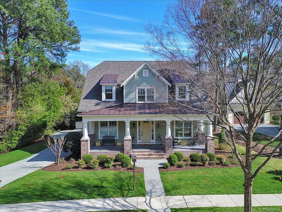 Guests cross the covered front porch to enter your bright foyer with tray ceiling and chandelier. Beautiful hardwood floors grace the main level. Gather in the stunning dining room also with tray ceiling, chandelier, and spectacular trim. Entertain in the gorgeous family room with coffered ceiling, raised stone fireplace, and dramatic wood paneled walls. The open concept gourmet kitchen features maple cabinets, granite counter tops, glass tile back splash, a large island with breakfast bar, gas cooking, stainless appliances, and a pantry. The 1st floor master suite has a large walk-in closet and en suite with double vanity with Silestone top, over-sized tiled shower, and jetted tub with tile surround. Other first level highlights include; a first floor guest bedroom/ office, a full bath on the hall and a laundry room with utility sink and storage. The 2nd floor landing/loft is a great bonus space! There are three additional large bedrooms, a large full bath, plus walk-in storage. The detached garage has walk-up storage, which could be finished. Enjoy the backyard from the over-sized patio.