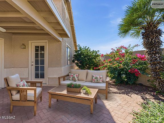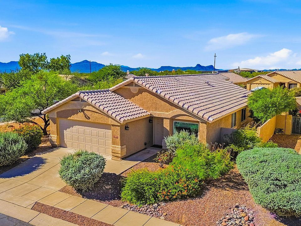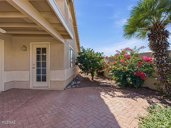 Exceptional Oro Valley location near shops, dining, and parks! This 3 bed, 2 bath home has a bright open floor plan features high ceilings, expansive windows, ceiling fans, and stylish 22'' tile throughout and no carpet. The kitchen offers granite countertops and a built-in microwave, while the extended-length garage includes built-in cabinets. French doors lead to a private, low-maintenance backyard with a covered patio, no rear neighbors directly behind. Corner lot offers added space and privacy. The primary suite includes a large closet, separate tub/shower, and patio access.