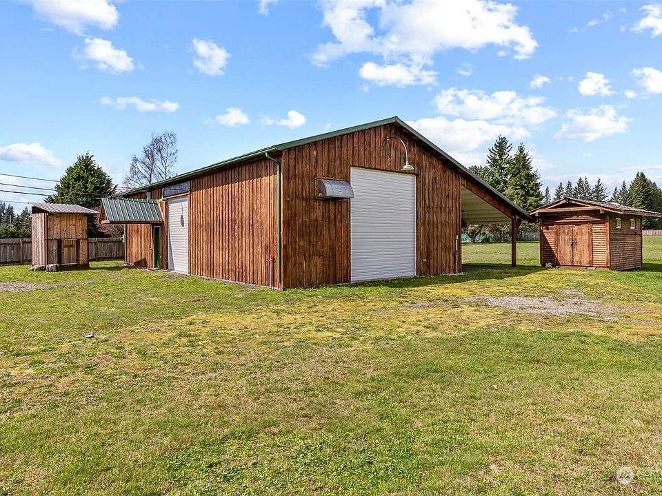 Extremely solid built, metal roofed & fully insulated 30x60 cedar sided shop w/10x12 & 12x13 access, 12X30 loft, on 3.29 acres. Lg extended carport for trailer, RV parking, etc. Electrical panel box has 3 phase capability. 3/4 bath, all new LED lights overhead, appliance hookup options, and plumbed for natural gas. Septic already on site & pumped, 2 additional outbuildings, air compressor with plumbing. Thick re-enforced concrete floor and heavy duty tie downs. Great location, golf course across the street, close to downtown Elma & 20 min. to Olympia. Pull up your 5th wheeler & build your dream home. Also available is shop & house w/additional 1.10 acres MLS#2036612 or just the house MLS#2036588