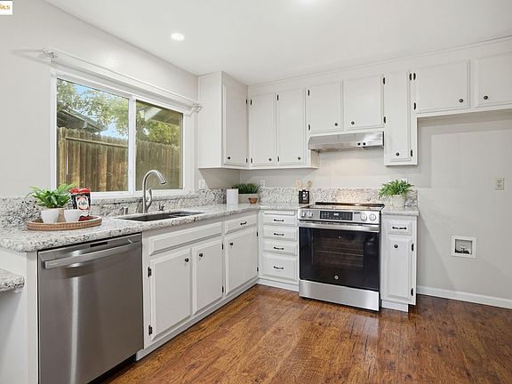 Charming & Cozy Corner-Lot Home with Modern Upgrades & Easy Commute Welcome to 1098 Alamo Court, a delightful single-story home perfectly situated on a desirable corner lot. This 982-square-foot residence features 3 bedrooms and 1 bathroom, offering a perfect blend of comfort, convenience, and modern touches. Step inside to discover a freshly painted interior featuring laminate wood flooring and thoughtful upgrades throughout. The remodeled kitchen shines with granite countertops, neutrally painted cabinetry, stainless steel appliances, oversized sink and plenty of workspace. The remodeled bathroom adds a fresh, modern feel, while the newer HVAC system keeps the home comfortable year-round. Outside, enjoy newer exterior paint, extended driveway with side yard access perfect for RV or boat parking. The 2-car garage and spacious corner lot offer flexibility for entertaining, gardening, or future expansion. Conveniently located just minutes from Highway 4 and BART, this home provides easy access for commuters and weekend adventures alike. Move-in ready and full of charm—1098 Alamo Court is ready to welcome you home!
