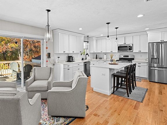 Nearly new and central to everything! This pretty 2022 home has everything you need and is ready to go. New solar panels add to the super efficiency of this sweet property. Open concept living room flows to eat-in kitchen with sliders to deck and easy living spaces. Three bright bedrooms, two full baths upstairs plus another half bath for your guests on the main floor. The walk out basement has a finished area for playroom and utility area for laundry and extra storage. A newly fenced yard provides privacy in the rear of property abutting natural greenspace. Sidewalks lead to tree lined neighborhood, conservation land, school or even nearby golf course! Less than 5 minutes to commuter train, and easy access to both highway and medical facilities.