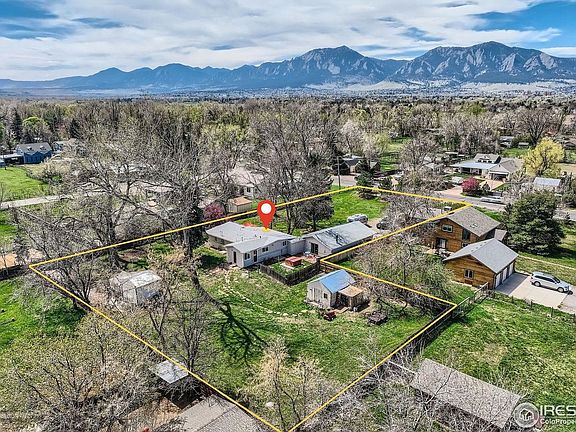 Beautifully updated home on an incredible 1-acre lot! This charming property delivers with modern updates with country comfort and is set back off Cherryvale over 175ft. Zoned RR that allows you to build your own micro-farm (see attachments for Boulder County's animal allowances). Inside you'll find the floorplan has been reimagined to provide an open floorplan while maintaining privacy for the bedrooms. Newly professionally remodeled kitchen (2023) shines with modern finishes, two-toned cabinets, gas stove on the island, open shelving, and stainless-steel appliances and more. Both bathrooms professionally renovated in 2023. Outdoors, you'll find mature trees, a greenhouse, two large storage sheds, and ample space for animals. Oversized 2-car garage for all your cars and toys, and TONS of additional parking on the property for your RV. The expansive front patio offers a peaceful place to relax, set well back from the road for added privacy. Other improvements: Water Heater (2024), Furnace (2023), Roof (2012), Gutters w/ Leaf Guards (2024), Exterior/Interior Paint (2023), Washer/Dryer (2020). A rare find that offers both convenience and room to roam - all just minutes from Baseline Lake, Flatirons Golf Course, shopping, and restaurants.