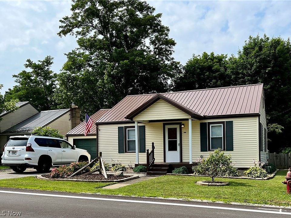 Cute 2 bedroom, 1 bath ranch home just outside the city limits. Metal roof & furnace completed in 2016. Many updates done in 2021 - new central air, new outbuilding, new privacy fence, new landscaping, new shelving in garage, house painted & kitchen cabinets replaced. This home has a wonderful double lot. Don't miss your opportunity to view this one today!