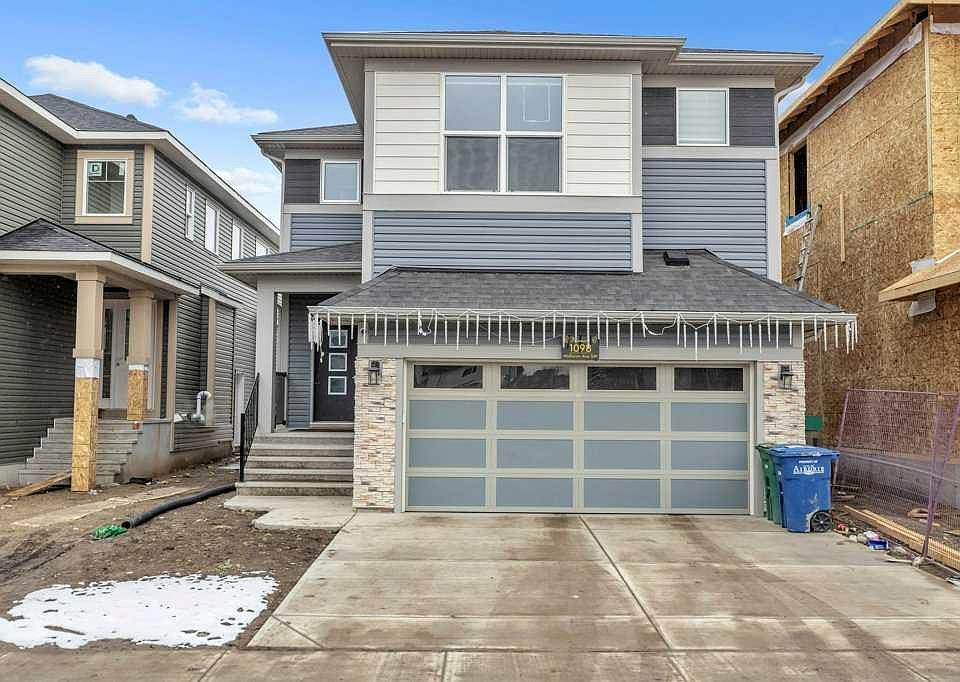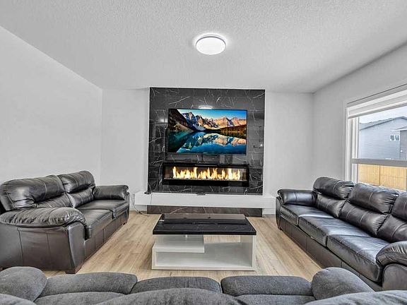 Located in the sought-after community of Midtown in Airdrie, this stunning SHANE HOME BUILT, home offers approximately 2,600 square feet of thoughtfully designed living space on a conventional lot. The main floor welcomes you with a spacious layout that includes a full bedroom, complemented by a bathroom featuring a standing shower—ideal for guests or multi-generational living. The gourmet kitchen is a chef’s dream, boasting built-in appliances, dual-tone cabinetry, and a massive pantry with spice kitchen rough-ins. An expansive living area showcases an extra elongated fireplace, adding warmth and elegance to the space. Venturing upstairs, 4 generously sized bedrooms provide ample accommodation, along with a versatile bonus area perfect for family gatherings. The primary suite is a true retreat, featuring a luxurious five-piece ensuite, while a common four-piece bathroom and a conveniently located laundry room complete the level. The basement offers exceptional potential with a separate entrance, three egress windows, and a vast undeveloped space, ready to be customized to suit your needs. This home perfectly blends style and functionality, making it an excellent choice for those seeking modern comforts in a prime location.
