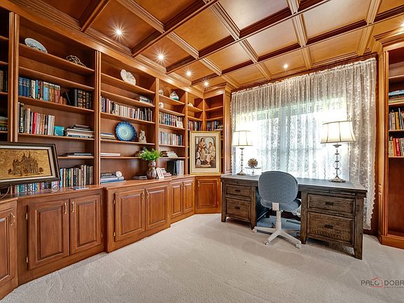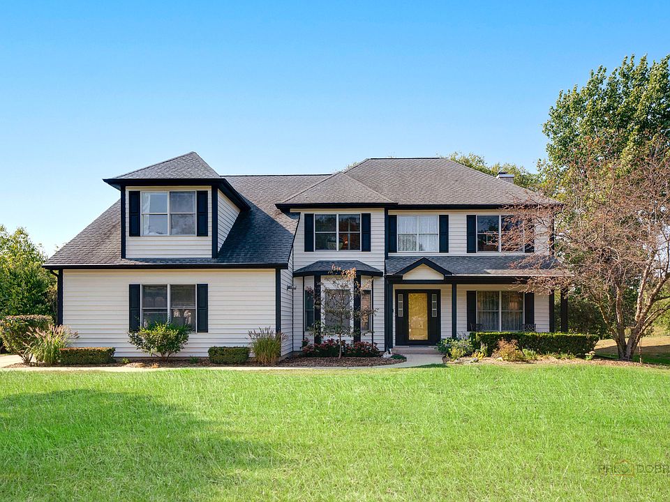 Impressive Custom Home in Stonebrook Estates! Step into over 3,000 square feet of beautifully updated space, featuring custom finishes and a range of modern upgrades. This home features a true Library with coffered ceilings, wood paneling on both the walls and ceiling, and built-in cabinets and shelving-offering a cozy and elegant space for reading or a quiet workspace. The Formal Dining Room boasts a tray ceiling, chandelier, four sconces, custom wainscoting, and bay windows, complemented by brand-new hardwood floors, creating an inviting atmosphere for entertaining.    The newly remodeled gourmet kitchen includes quartz countertops, custom cabinetry, a deep farmhouse sink, and stainless steel appliances, including a Jenn-Air deluxe gas stove and a new refrigerator (2023). Adjacent to the kitchen, the breakfast room features a bay window and a French door leading to a large, private deck that was newly stained in 2023, perfect for morning coffee or al fresco dining.    The home's 2-story foyer provides an open, airy feel with plant ledges, leading to spacious living areas. The family room is filled with natural light from extra windows and includes a cozy wood-burning fireplace with a gas insert, ideal for family gatherings. Each bedroom features double windows, with the master bedroom boasting triple windows, allowing plenty of natural light. One of the upstairs bedrooms is especially spacious and could serve as a theatre, craft room, sewing room, or play space. There are 2.5 bathrooms, and walk-in closets in every bedroom. The master suite includes a jetted tub, dual vanities, and a large separate shower. Additionally, there are two linen closets in this home. The home offers practical and luxurious features, including Marvin windows with easy-clean functionality, a heated garage perfect for winter projects or year-round gardening, and five ceiling fans for comfort. The yard is professionally landscaped and backs onto serene natural wetlands, where you can observe wildlife like chipmunks, otters, and muskrats. The yard also has three fruit trees-two apple and one peach-for seasonal enjoyment.    This property also includes an unfinished basement plumbed for a full bath, a firewood storage box for convenience during the winter, a central vacuum system, an intercom system with a CD player, and a full-yard sprinkler system-the only one in the neighborhood. The house is located on a quiet cul-de-sac and offers additional safety features, including a fire hydrant across the street and a nearby fire station (approximately 1 mile away), which can be advantageous for insurance purposes.    Conveniently located just minutes from Gurnee Mills Mall, Six Flags Great America, local parks, and over three grocery stores within walking distance, this home provides the perfect blend of luxury, comfort, and accessibility. The school bus stops right in front of the house, adding to the convenience for families.    Ready to experience luxury living in a quiet, upscale neighborhood? This stunning home is waiting for you!