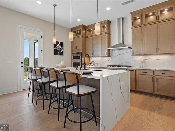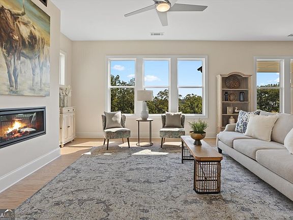 Experience luxury living in this upgraded, brand-new home in Canton's sought-after Great Sky community. Set on a premium lot with more than $100K in upgrades, this thoughtfully designed residence offers both elegance and comfort. The chef's kitchen features waterfall quartz countertops, a solid-surface quartz backsplash, ceiling-height custom cabinetry with built-ins, double oven, gas cooktop, and high-end appliances. Interiors boast 10-foot ceilings on both levels, real hardwood floors, a linear fireplace, and a formal dining room. Bathrooms include custom tile showers, tile floors, and upgraded vanities. Enhanced plumbing, electrical, and low-voltage wiring, plus a tankless water heater, gas heat, and electric air, add efficiency throughout. Step outside to a covered patio with a gas line ready for an outdoor kitchen, and enjoy seasonal views of the reservoir from the back porch and mountain views from the front porch. Great Sky's resort-style amenities include multiple pools, clubhouse, tennis and pickleball courts, scenic trails, and more. Just five minutes to the clubhouse and reservoir access, five minutes to the new Cherokee High School, and close to Downtown Canton and The Mill on Etowah.