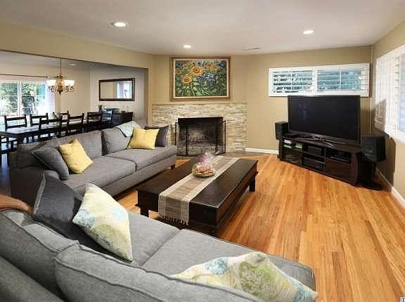 Awesome and Wonderful Country Sweetie, Horse property neighborhood is located on a beautiful cul-de-sac. A highly desirable area directly adjacent to Shadow Hills. Remodeled Ranch Style Beauty 1533 S.F. 3 B/ 2 B home features Spacious living room with charming hardwood floors, recessed lights, two fire places - one in dining room, which leads to tastefully updated gourmet kitchen with custom cabinetry, quatrz countertops, and stainless steel top of the line appliances. Spacious master bedroom with ample closet space, and updated master bathroom with double vanity. Lovely dining room opens up to private large patio and very large entertainer's back yard with fruit trees, room for pool and guest house. All bedrooms have beautiful hardwood floors throughout and custom closet organizers. This stunning home has large lot 17659 S.F., new central heat and A/C, New garage roof, New Electrical panel, New windows, custom Plantation Shutters, tankless water heater and oversized 2.5 car garage.