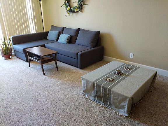 Seeking up to two residents for private upper level studio in the Club California condo complex. The bedroom is equipped with privacy curtains, three speed ceiling fan, ample storage in a spacious mirrored closet. The living room contains a new remote controlled air conditioner/heater and can be configured as a second living space with a privacy wall with plentiful closet storage, bed, mirror, desk (example of two bedroom set up in last two images). The living room features a curtained wall of windows with a gorgeous view of residential Westwood. Apartment is furnished and can either be configured as shown here with a 1 bedroom look or two separate beds with one in the living room space with extra storage space. The kitchen features granite counter tops and a large stainless steel refrigerator with filtered water dispenser. Unit comes with 1 parking space. The parking space can be removed from the lease to lower the rent if desired. The apartment is located in the beautiful Club California complex located within easy walking distance to the UCLA campus and Westwood Village. Club CA offers many amenities such as elevators, key card access, a game room with pool tables and TV, bbq patio, solar heated swimming pool, weight room, and aerobic exercise gym. Owner pays trash and water. Tenant pays electrical and internet.