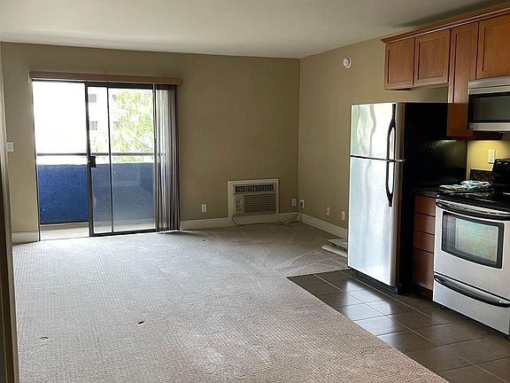 Top floor studio walking distance to UCLA! This studio is bright and in a great location within the Club California building. The unit offers newer carpet, stainless steel appliances in great condition, balcony overlooking the pool area. This is a very private, clean unit ready for move in. The building offers manager on site that provides security, a two-story gym, heated pool, lounge area with pool and card tables and much more! Water, trash and ONE PARKING SPACE is included in the rent. Tenant is responsible for electricity and internet bills. No gas bill, all appliances are electric.