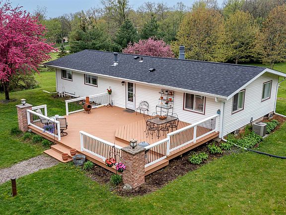 2.2 acres zoned AG. Very scenic and private home with many updates! Quiet country road convenient to Rockford/Rockton/Durand. New Shaker style kitchen cabinets/tops/and gas range in 2022. Plank flooring in living room 2022. Half bath near kitchen updated 2020. Roof 2020 on house and garage. Gutters 2020. Hot water heater and electrical panel updated in 2018. Furnace 2016. Humidifier 2018. Sump Pump 2019. Lower level space is a great get away with custom designed Epoxy floor/very durable. White woodwork throughout. Oversized deck for entertaining friends. This is "for sure" move in condition.