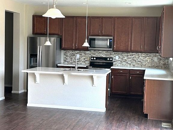 Welcome to this stunning 4-bedroom, 3-bathroom house located in the highly sought-after Reunion area of Commerce City, CO. This home boasts a plethora of modern amenities that cater to a comfortable and luxurious lifestyle. The interior features a cozy fireplace, perfect for those chilly Colorado evenings, and a kitchen equipped with top-of-the-line stainless steel appliances. The large windows throughout the house ensure ample natural light, creating a warm and inviting atmosphere. The master bedroom comes with a spacious walk-in closet, providing plenty of storage space. Step outside to a large deck, ideal for outdoor entertaining or simply enjoying the beautiful surroundings. The house also includes a convenient laundry room, complete with a washer and dryer. For those who need extra storage or workspace, the 2-car garage will certainly meet your needs. This house is a perfect blend of comfort and luxury, making it a must-see property in Commerce City.