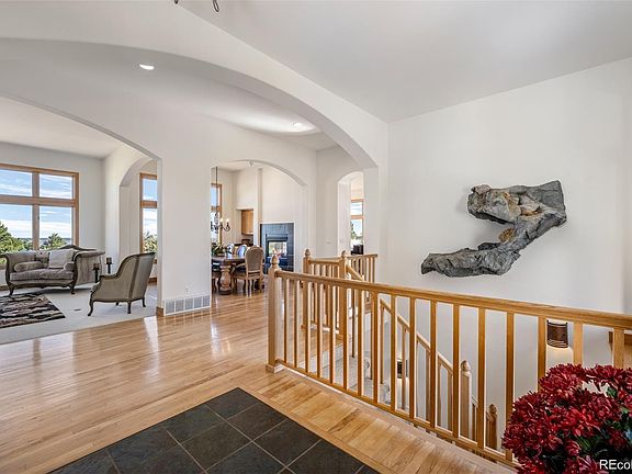 Welcome home to this immaculately maintained custom ranch property nestled in the heart of the coveted Roxborough Park community offering views of the Denver Skyline & Chatfield Reservoir. Pride of ownership shines through in this original owner home w/a walk-out basement situated on over half an acre. Immediately upon stepping into your dream home you’re greeted by a welcoming foyer filled with natural light and views of picturesque Colorado scenery through countless windows throughout. You’ll enjoy sipping your morning coffee on the private deck overlooking the backyard retreat with no neighbors immediately behind the house. Entertaining guests is a breeze in the formal living & dining room area with hardwood flooring. Cozy up by the double sided gas fireplace in the family room w/stone surround. A large open-concept kitchen, complete w/stainless steel appliances, oversized island, pantry, & an eat-in kitchen space opens up to the private deck. The primary suite features a walk-out patio, vaulted ceilings, a skylight, dual walk-in closets, & 5-piece bathroom w/new stone flooring. Rounding out the main floor is a home office (or extra bedroom), powder bath, & laundry room. The basement provides ample living/entertaining space, home to a large living room w/tray ceilings, built-in speakers, black-out shades, walk-out access to the backyard, storage space, plus 2 more bedrooms w/a jack & jill full bathroom. Recent upgrades include brand new AC & newer water heater. You’ll love the professional mature landscaping, durable cement tile roof, and spacious 3-car garage with custom built-in cabinets. Enjoy the best of both worlds with convenience to shopping and dining options plus tons of nearby outdoor activities. Located between Lyons Trail, Arrowhead Golf Course, Marmot Ridge Park, Waterton Canyon, Ravenna (accessible via golf cart), and less than 5 minutes from renowned Roxborough State Park, the hiking, biking, boating, fishing and golfing options are limitless.