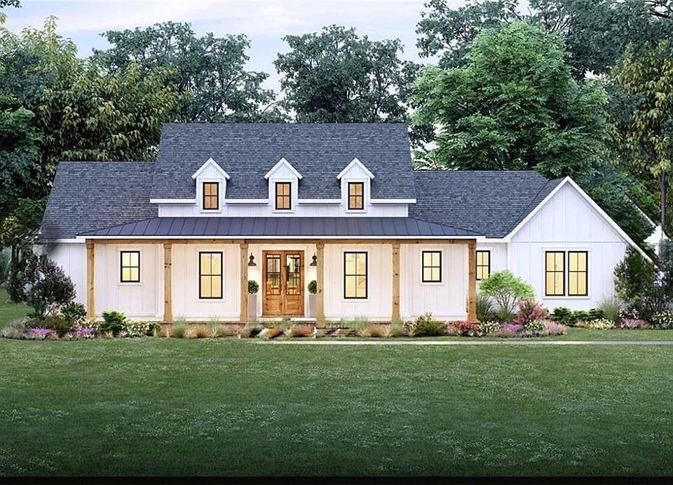 Brand New Construction on 4.22 Private Acres! This beautifully designed home offers 4 spacious bedrooms, 2.5 bathrooms, and a versatile office/ bonus room with a closet-perfect for use as a 5th bedroom. With 2,232 square feet of thoughtfully planned living space, this home combines comfort and functionality. Enjoy the convenience of a 2-car garage and the tranquility of a private 4.22-acre lot, providing plenty of room to relax, entertain, or expand. A rare opportunity to own a modern home on a serene, spacious property! * STILL UNFER CONSTRUCTION- ESTIMATED COMPLETION END OF JULY.* This Modern Farmhouse plan delivers a phenomenal home designed for those looking for a beautiful bright exterior met with spacious outdoor living and an open interior concept with plenty of modern-day conveniences. The traditional farmhouse exterior showcases a wrap-around front porch decorated with timber pillars. The triple dormers in the front add to the aesthetics of the home along with the beautiful windows lighting up the interior. The rear of the home features a covered patio which makes for a great grilling station on warm, sunny days. Finishing off the exterior is the side-entry garage with a pedestrian door and entry into the interior through the mudroom and a guest powder room. The interior measures approximately 2,232 square feet with four bedrooms and two-plus bathrooms. The front entrance leads to a foyer with 11-feet ceilings, this home office enjoys the privacy of a front location with a window view overlooking the front porch. Moving toward into the great room, notice the beauty of the open floor plan layout. The vaulted ceiling vaults up to 16-feet. The warming fireplace is wonderful focal point. Across the entryway is the kitchen and dining room, all providing open floor plan. These two rooms feature a center island with an eating bar, a large walk-in pantry, and window views overlooking the covered patio. The split bedroom layout details the owner's suite on one end and the secondary bedrooms are found on the opposite end of the home. The primary suite features a bedroom with a vaulted ceiling, an attached en suite bathroom and a walk-in closet. The secondary bedrooms share a hall bathroom and each bedroom features good closet space and window views. All in all, this Modern Farmhouse plan highlights a great interior layout with marvelous outdoor privacy.