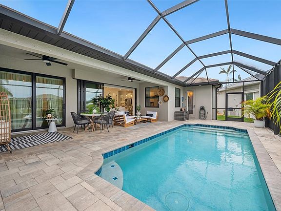 Modern luxury and practical design in this exceptional waterfront home located in the coveted Punta Gorda Isles! Minutes to Charlotte Harbor, this remarkable property is ideal for those seeking the ultimate waterfront lifestyle or a ready investment opportunity. With direct water access and proximity to the harbor, it's a boater's dream come true, while the screened-in saltwater pool offers a tranquil setting perfect for enjoying sunsets. Constructed in 2019, this residence features 3 generously sized bedrooms with custom walk-in closets and 2 elegantly updated bathrooms with premium finishes. Encompassing 2,029 square feet of expertly crafted living space, the open floor plan effortlessly connects the indoor and outdoor areas through pocket sliders that lead to a spacious lanai. The master suite is a deluxe, complete with a spacious spa shower, soaking tub, and refined details throughout. Recent upgrades include new carpeting throughout, maintaining a shoe-free environment, a cutting-edge water purification system, and a UV air filtration system for superior air quality. The back lanai features high-grade Cat 5 hurricane-rated screening, complementing the front screened-in patio for enhanced outdoor living. Additional improvements include new appliances, a saltwater softener system, a heated saltwater pool system for year-round use, and a newly installed central AC system, along with a cooling unit in the three-car garage. Every element of this property has custom lighting, door hardware, faucets, and fixtures, ensuring both style and functionality. Its contemporary design stands out in the area for its storm resilience, elevated construction, stem walls along the canal, and hurricane-rated windows, doors, and pool screens. This home is a true masterpiece with its flawless craftsmanship, prime location, and grand finishes. Whether you're in search of a permanent Florida sanctuary or a high-end investment property, this home offers everything you desire. Don't miss this opportunity! Schedule your private showing today!