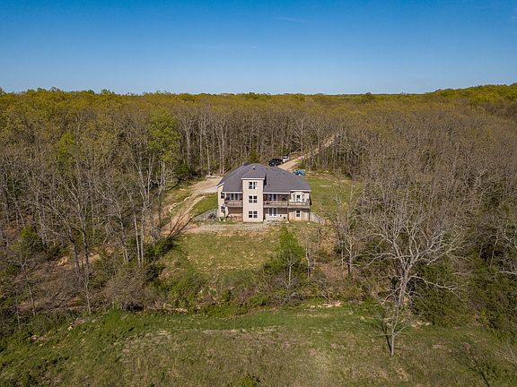 Beautiful custom home with great views on 75 private acres! This 6 bedroom 4.5 bath walkout basement home has custom features throughout. Nice hardwood floors throughout the main level, 13 foot ceilings in the living and dining room, great open concept with a split floor plan. Large open kitchen with white cabinets, granite, tiled floors and large eat in dining area, with a separate formal dining room. The master suite has a private deck, large on suite bath with a jetted tub, walk in shower, double sinks and walk in closet. Upstairs is a second large master bedroom with its own private on suite bath. The basement has been recently finished with two more HUGE bedrooms (1 non conforming). Enormous open living room/family room along with a separate dining room space. A second full kitchen is in the basement with granite counter tops and plenty of storage space. The basement has carpet and vinyl floors throughout. The ceilings will be finished in the next week or two with tin and all trim work will be completed. The house is heated and cooled with a zoned geothermal unit. Outside you will see the newly finished two car garage and the back porches are both covered with tongue and groove pine ceilings. Acreage is mostly wooded with a bottom field running through the middle of the property, a few wet weather creeks and nice size pond.